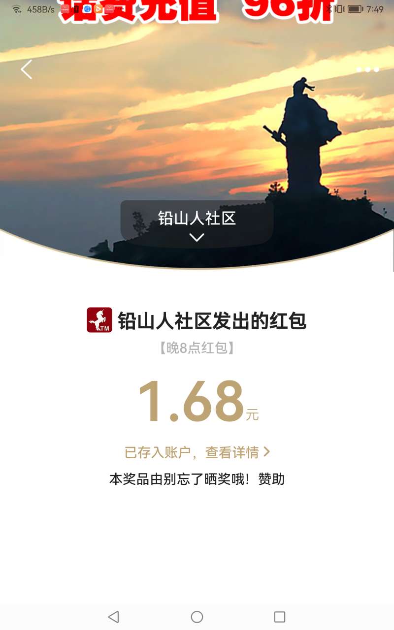 网友晒奖|刚刚刷到一路发了,1.68元大红包